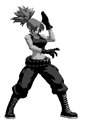 In this example, we load an animated sprite of Leona Heidern from the King of Fighters series and convert it to grayscale to make motion and pose changes easier to analyze. We then enable grayscale tone reduction and limit the palette to just five shades of gray. This creates a flat, spot-like appearance that helps visually separate limbs, clothing, and movement across all 48 frames of the animation. (Source: SNK.)