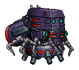This example transforms an 8-frame game sprite of a Quadro Hover weapon into a shimmering, colorful object. It uses a high chromatic aberration setting to create a rainbow color-fringe effect and high digital noise to make the animation flicker. We also increase the brightness to 120% to give the sprite a glowing, overexposed appearance. (Source: SNK.)