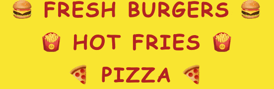 In this example, we create a vertical fast food promo banner with continuous scrolling. We do not add a decorative symbol through the option; instead, we insert various emojis directly into each line of text and move them upward without stopping. We use bold firebrick-colored text and set a warm yellow background in the style of a signboard.