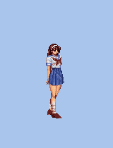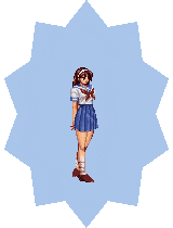 In this example, we stylize a character sprite using a gentler star geometry. We apply a 10-spike star to a GIF of Athena Asamiya, adjusting the mask to 160×210 pixels so that her entire movement stays visible within the shape. The sharpness value of 0.2 makes the star more rounded, preventing the character from being clipped by narrow spikes. We also rotate the star by 18 degrees, aligning one spike upward and another downward. (Source: SNK.)