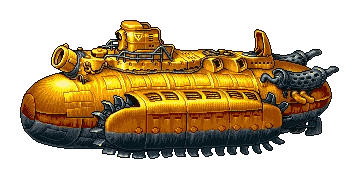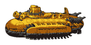 This example shows the Sand Marine boss from Metal Slug 5 quantized to a palette of 5 colors. The original yellow tones and gradients are flattened into bold shapes, giving the 12‑frame animation a stylized, poster‑like appearance. (Source: SNK.)