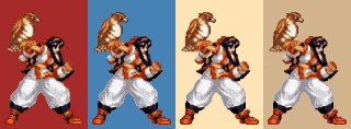 In this example, we upload an animated sprite of the character Nakoruru from the Samurai Shodown series. For a game sprite, it is crucial to maintain visual consistency across diverse in-game scenes. We preview the sprite on four natural background tones (brown, steelblue, moccasin, and tan) to ensure its adaptability. With animation playback enabled, we observe the movement on each background to confirm that the sprite's outlines and colors remain clear in every environment. (Source: SNK.)